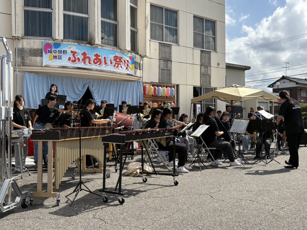 婦中熊野地区のふれあい祭りに参加しました 2025年9月30日 最終更新日時 : 2025年9月29日 nan-naru ようやく夏の猛暑が去り、地域では秋祭りの季節を迎えました。 27日、婦中熊野地区のふれあい祭りに参加しました。地区の役員、消防団の皆さんなどが様々な模擬店やフリーマーケットを催され、ステージでは速星中学校吹奏楽部が見事な演奏を披露してくれました。 爽やかな秋晴れのもと、会場は子どもからご年配の方まで、多くの来場者で賑わいました。